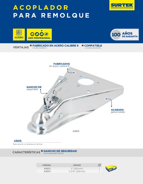 Acoplador para remolque tipo “A”, 2-5/16″ Surtek