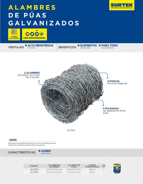 Alambre de púas calibre 12.5, 300 m, 30 kg Surtek