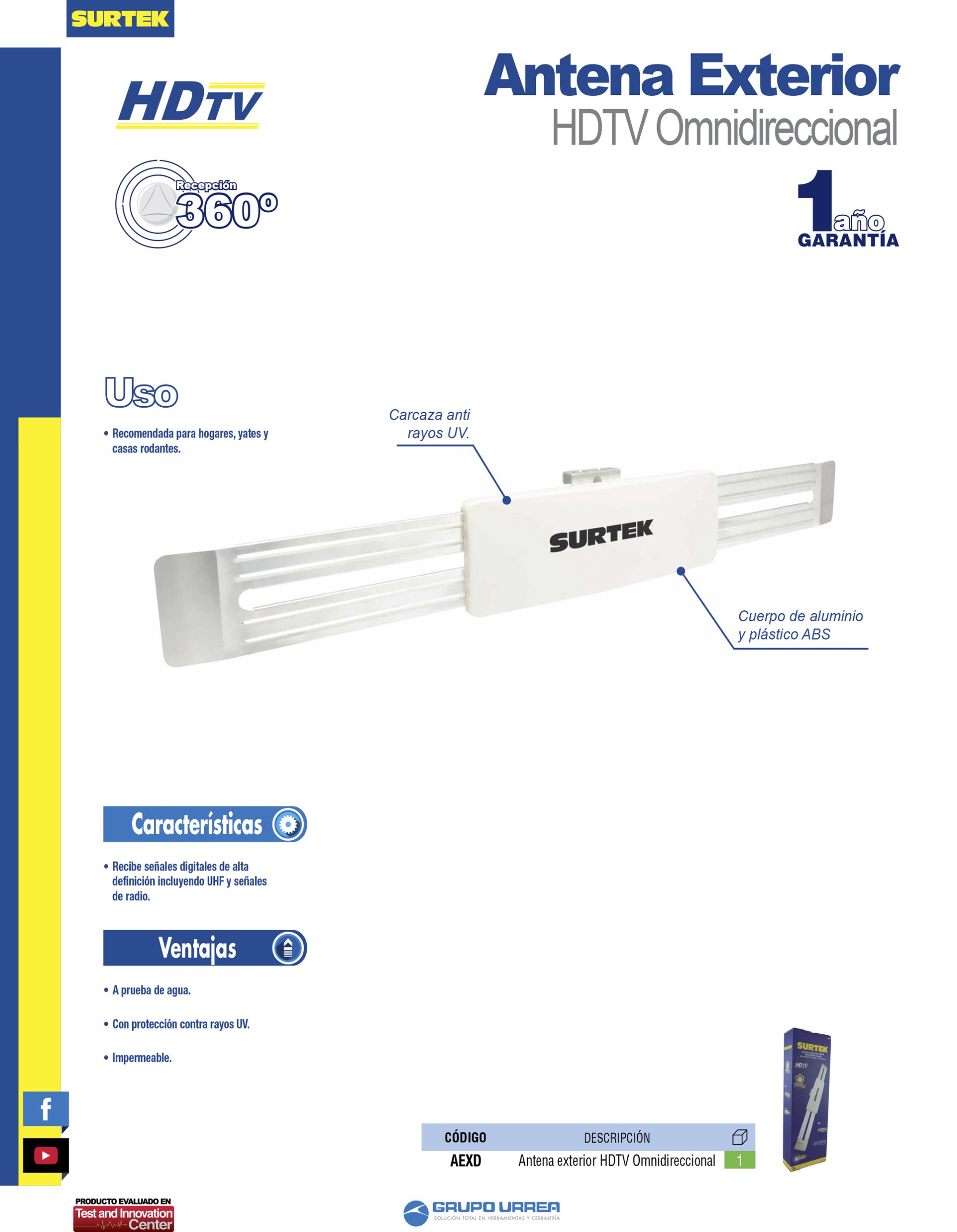 Antena exterior HDTV omnidireccional Surtek