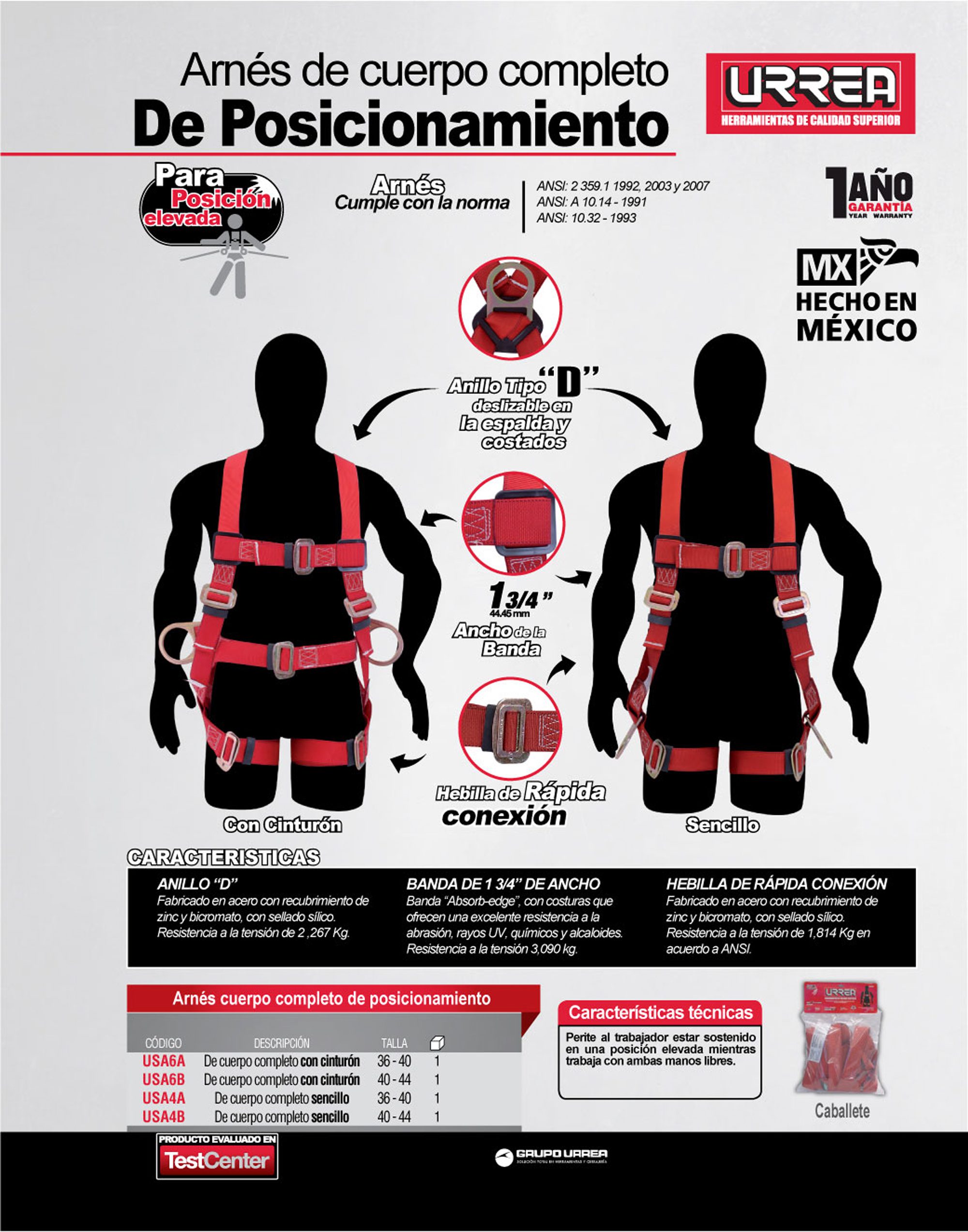Arnés de seguridad de posicionamiento con cinturón, talla 36-40 Urrea