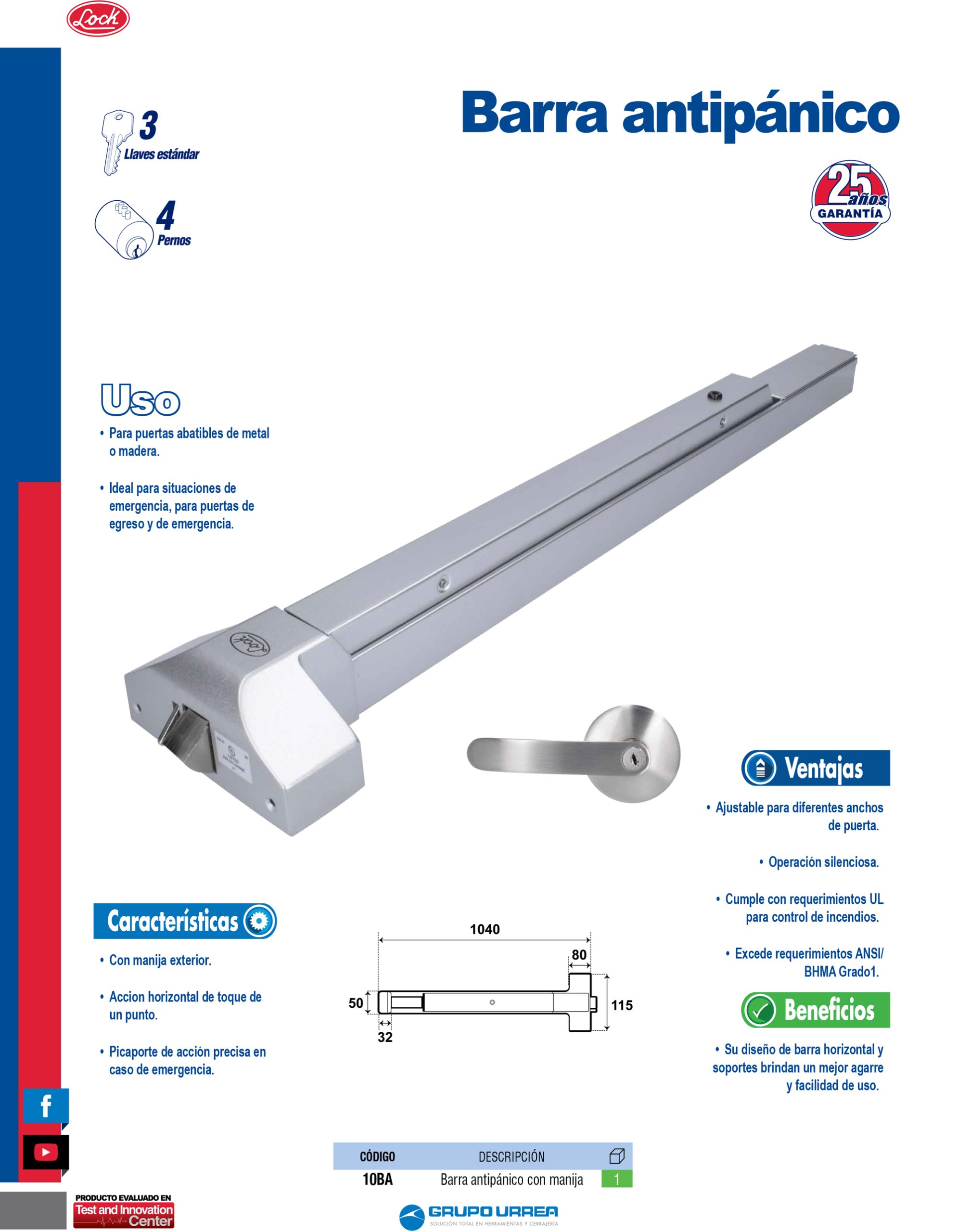 Etiquetas: barra antipanico, barra antipanico con manija, cerradura de emergencia, cerradura de emergencia con manija, cerradura salida de emergencia.