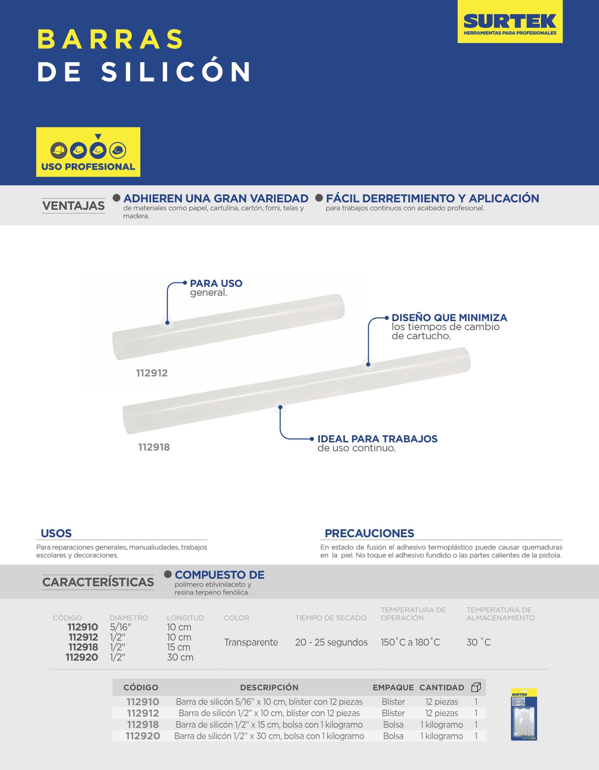 Barra de silicón 1/2″ x 10 cm, 12 piezas en blíster Surtek