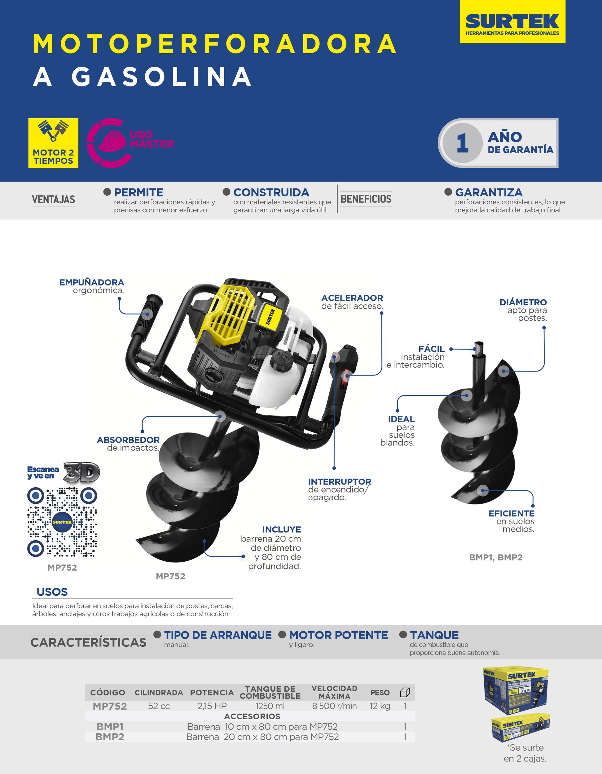 Etiqueta: Barrena de 10cm para motoperforadora Surtek. Barrena de 10cm para ahoyadora-motoperforadora 52cc Surtek. Barrena de 10m para MP752