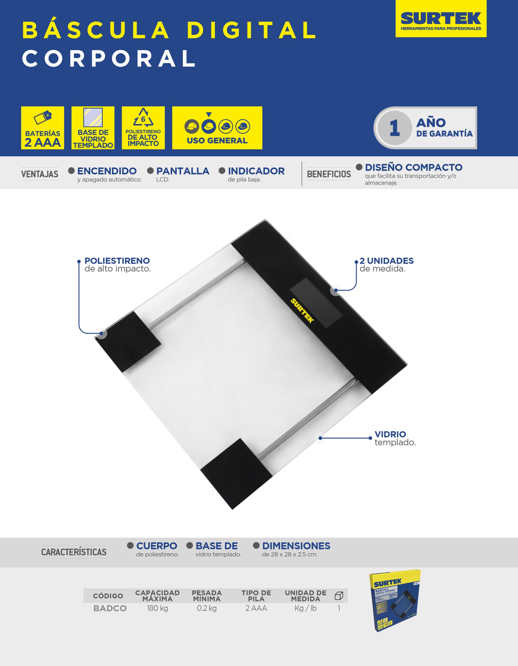 Báscula digital corporal 180 kg Surtek