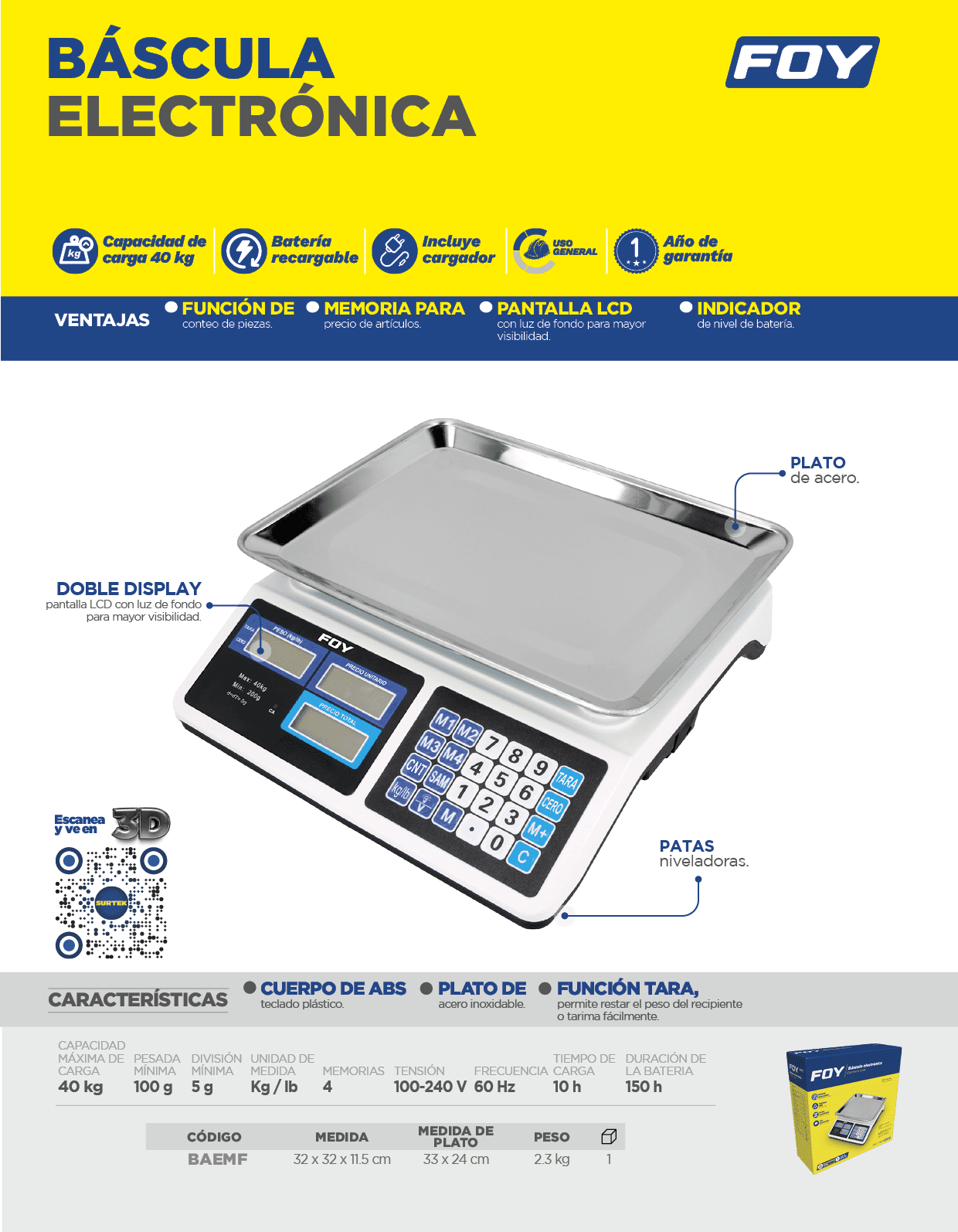 Báscula electrónica 40 Kg FoyBáscula electrónica 40 Kg Foy