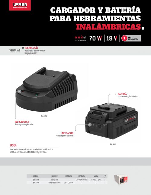 Batería Litio-ion 18 V para RI1018, EI1018, LI1018 y AI1018 Urrea