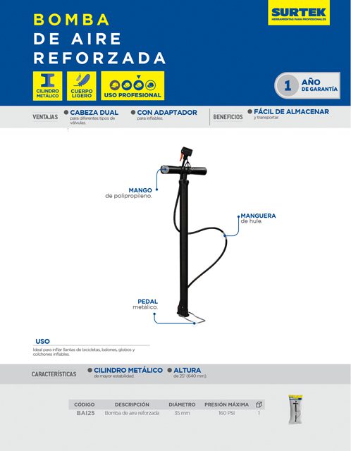 Bomba de aire con cilindro metálico reforzado 25″ Surtek