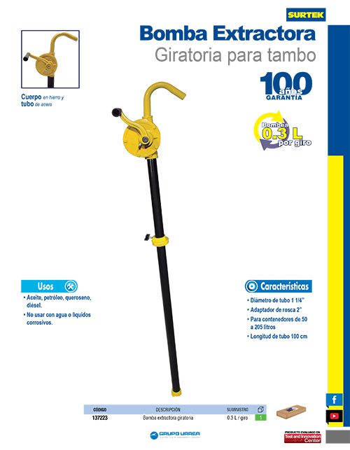 Bomba extractora giratoria para lubricantes, suministro 300 ml por giro Surtek