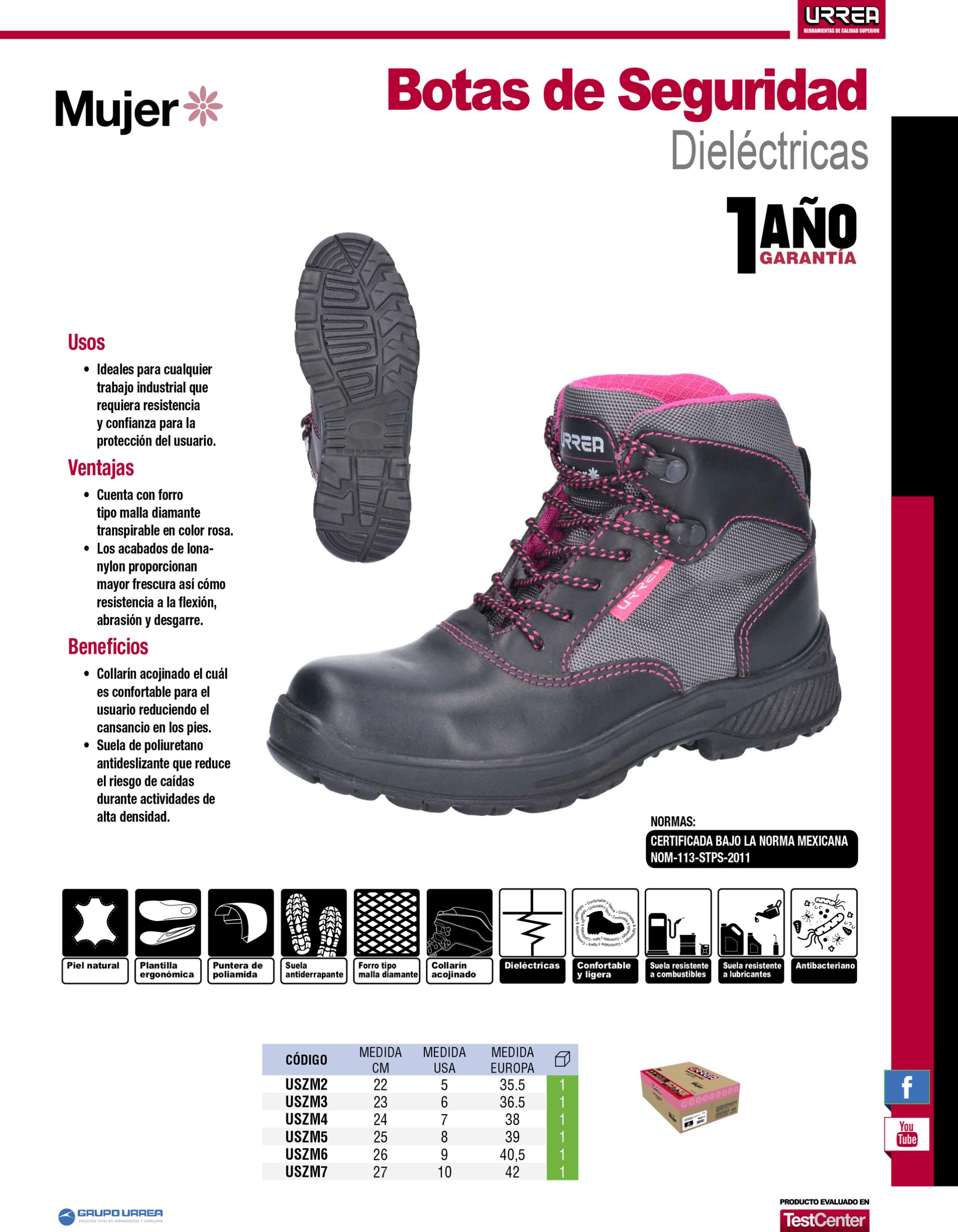 Botas de seguridad dieléctricas para mujer con casquillo de poliamida #25 cm Urrea