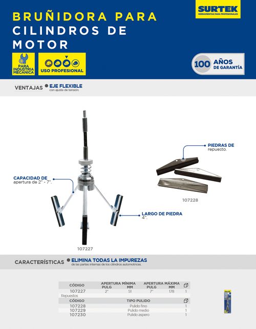 Bruñidora para cilindro motor de 2″ a 7″ Surtek