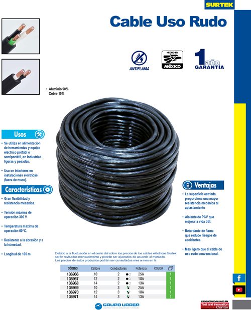 -Material Del Conductor: 90% Aluminio, 10% Cobre