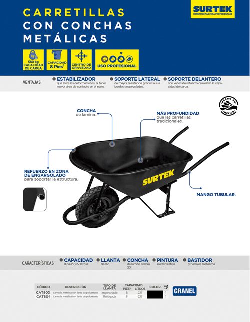 Carretilla reforzada con bastidor metálico 8 Ft3 llanta neumática reforzada Surtek