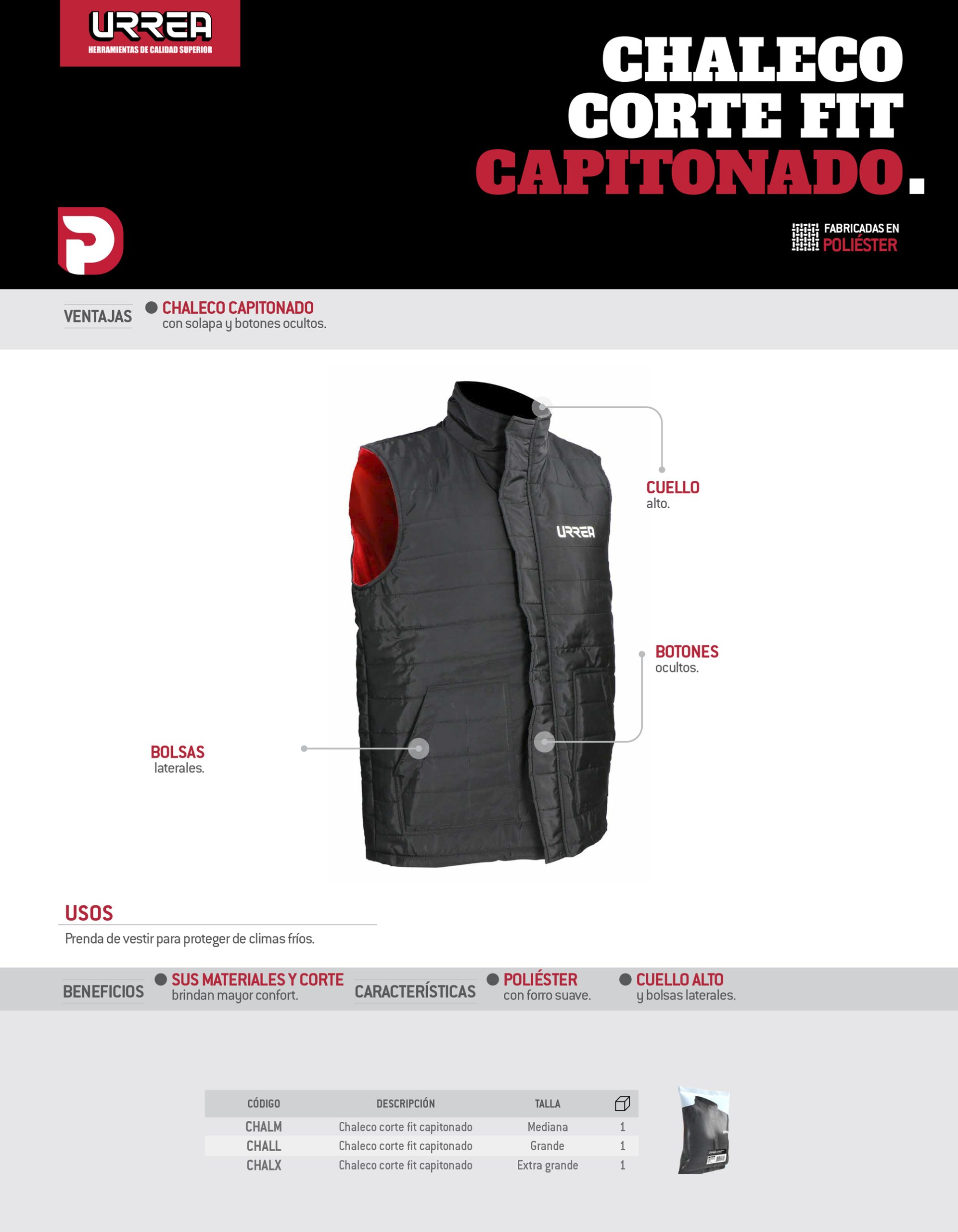 Chaleco corte fit capitonado talla EG Urrea