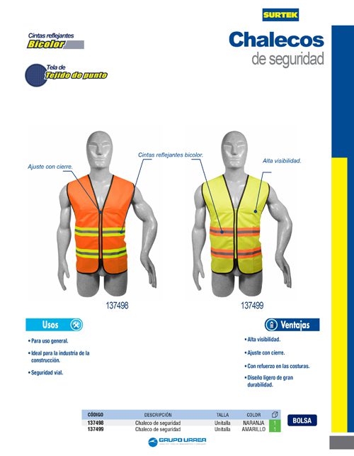 Chaleco de seguridad de alta visibilidad con cierre amarillo unitalla Surtek