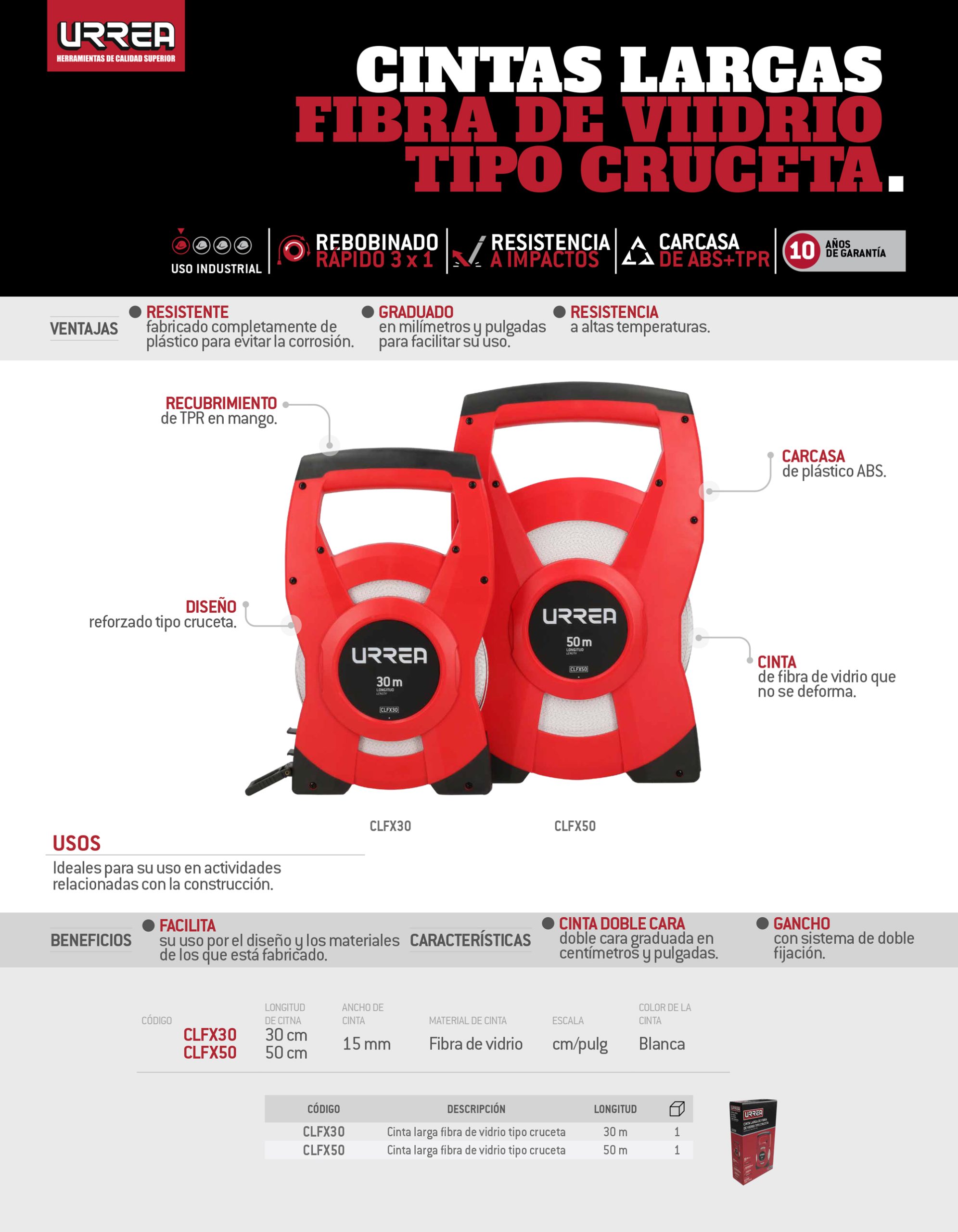 Cinta larga de fibra de vidrio tipo cruceta 50 m Urrea