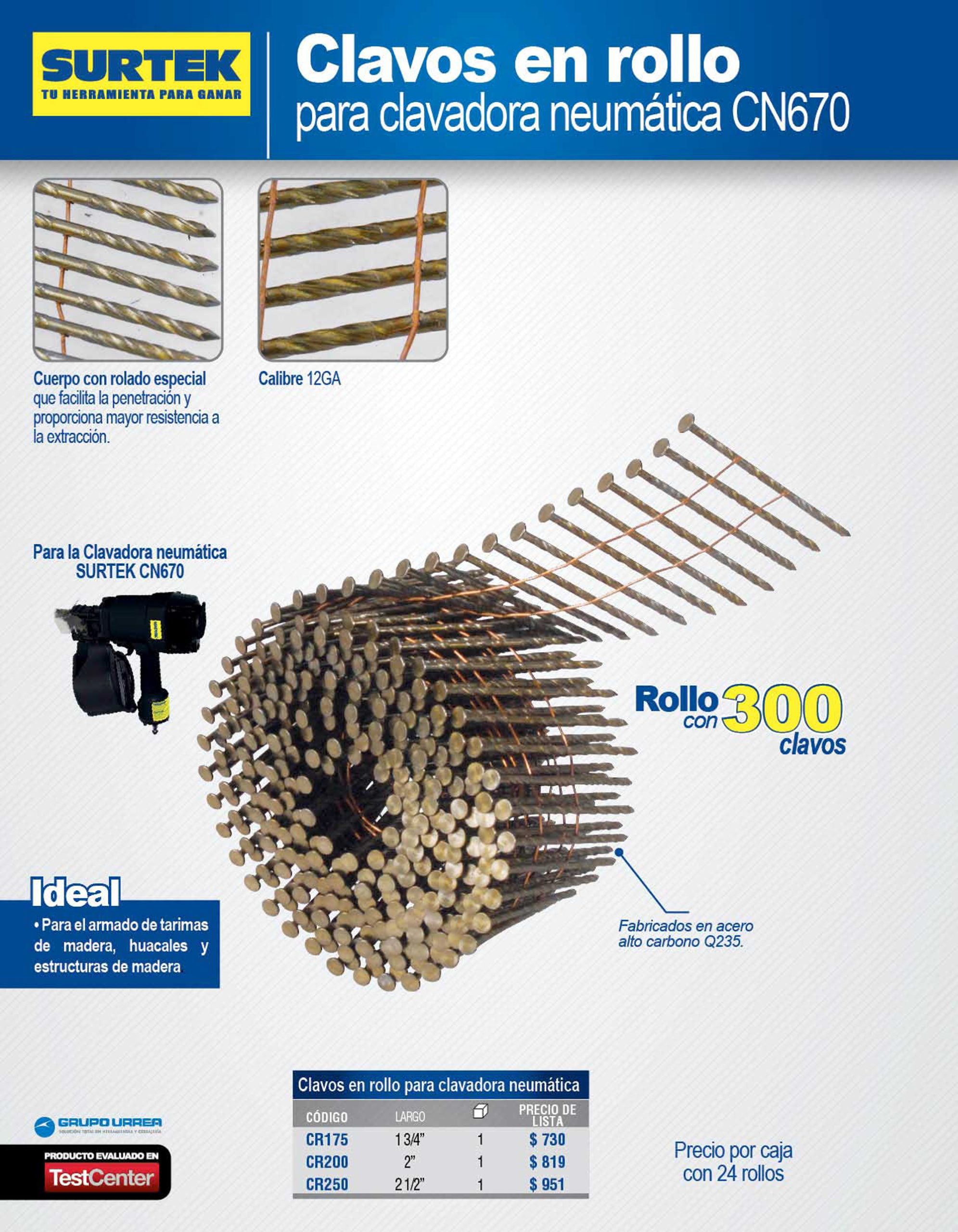 Clavo rolado en rollo 2″ Surtek