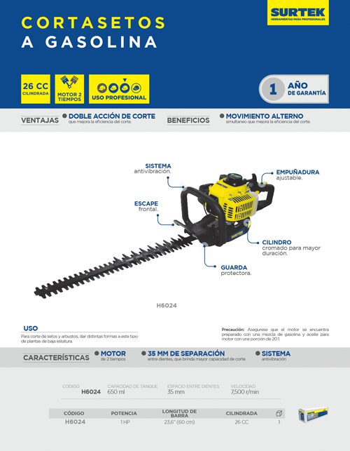 -Sistema antivibración. Empuñadura trasera ajustable 0°, 45° y 90° hacia ambos lados.