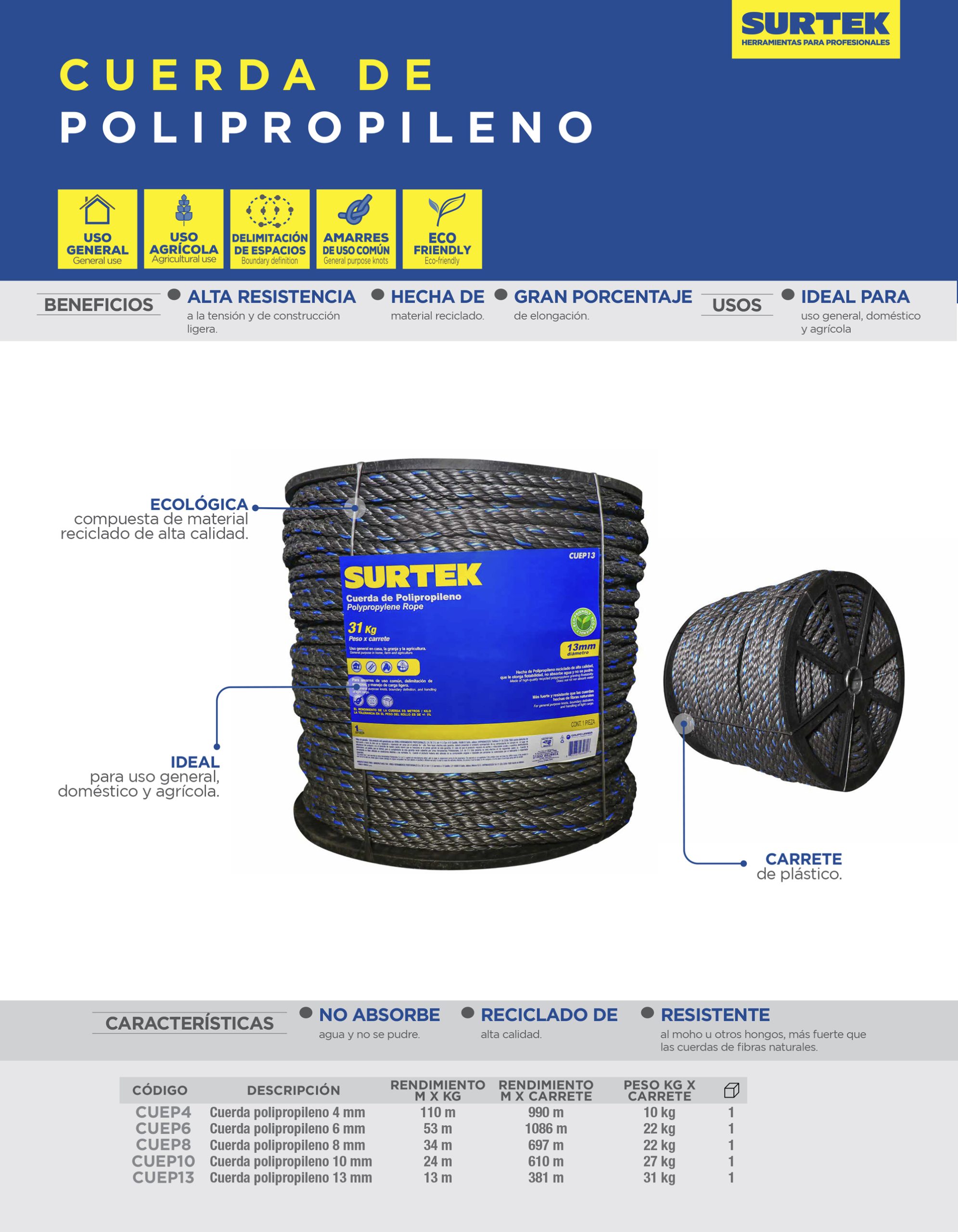 Cuerda de polipropileno reciclado.