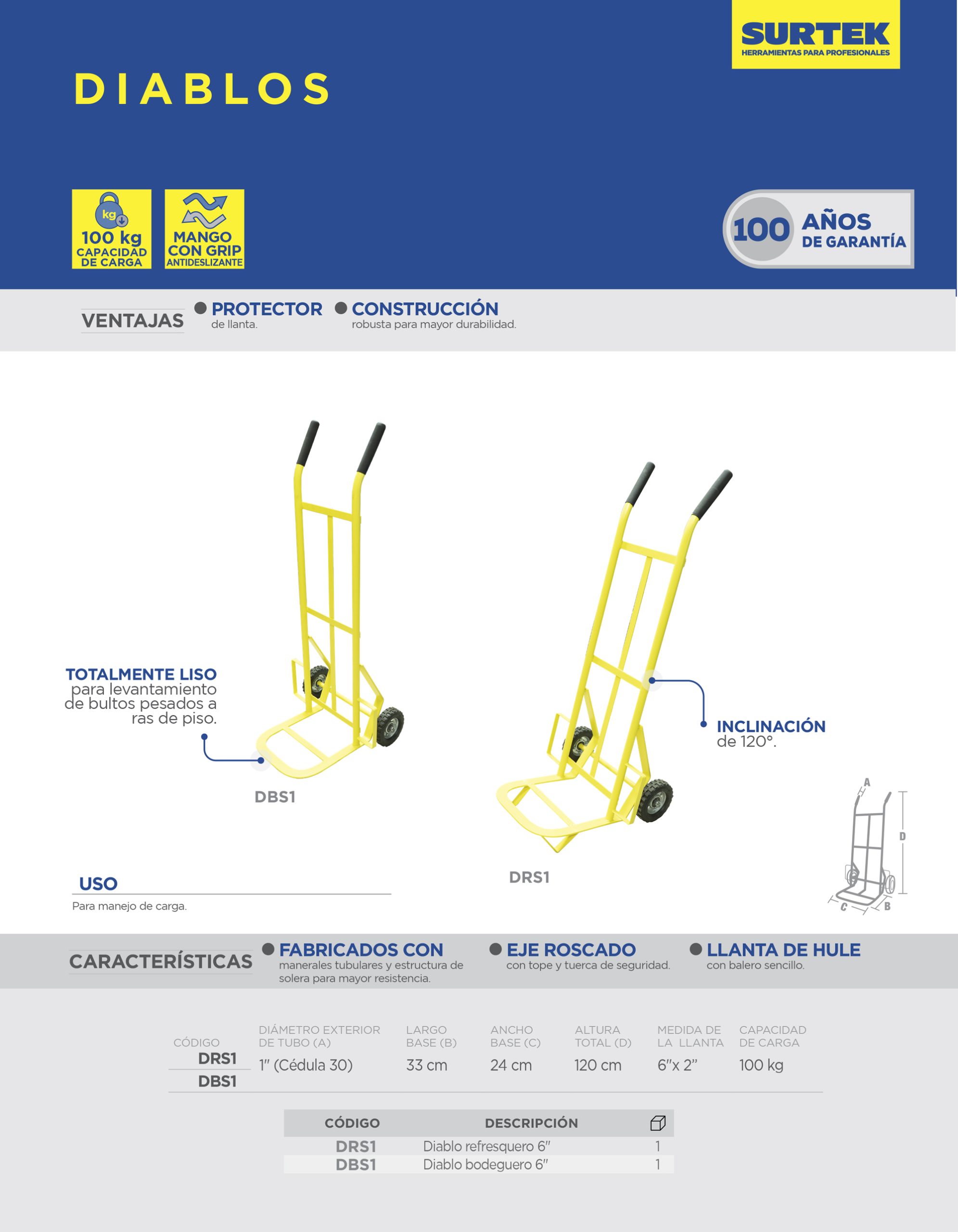 Diablo bodeguero capacidad 100 kg amarillo con llanta sólida Surtek