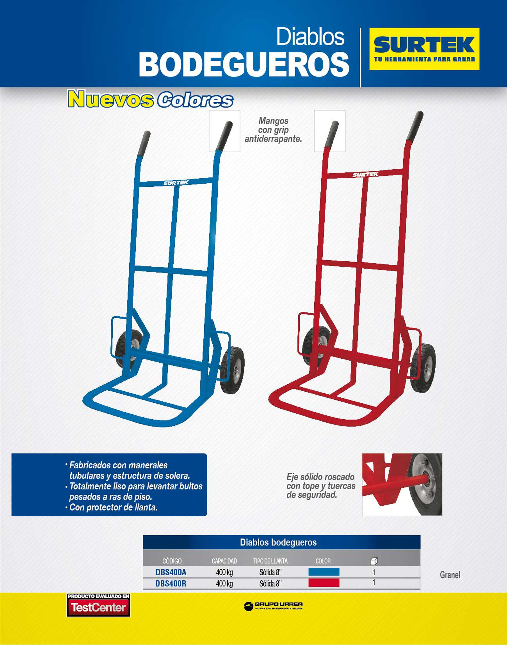 Diablo bodeguero capacidad 400 kg azul con llanta sólida Surtek