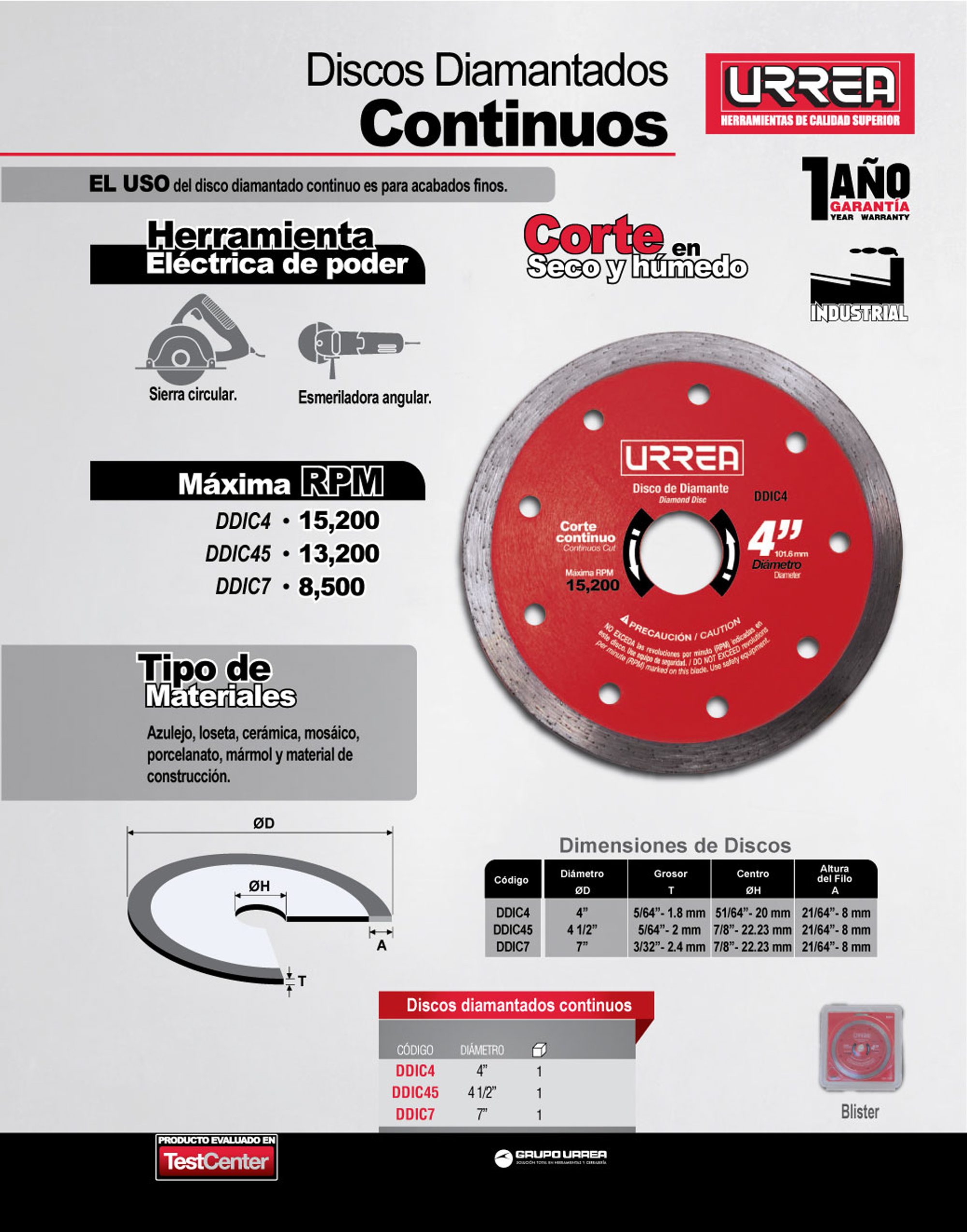 Disco de diamante continuo, 7″ Urrea