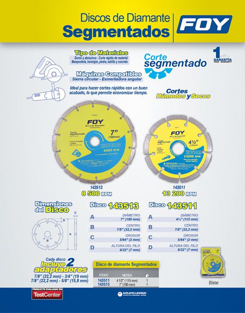 -Disco de diamante corte segmentado 7″ Foy