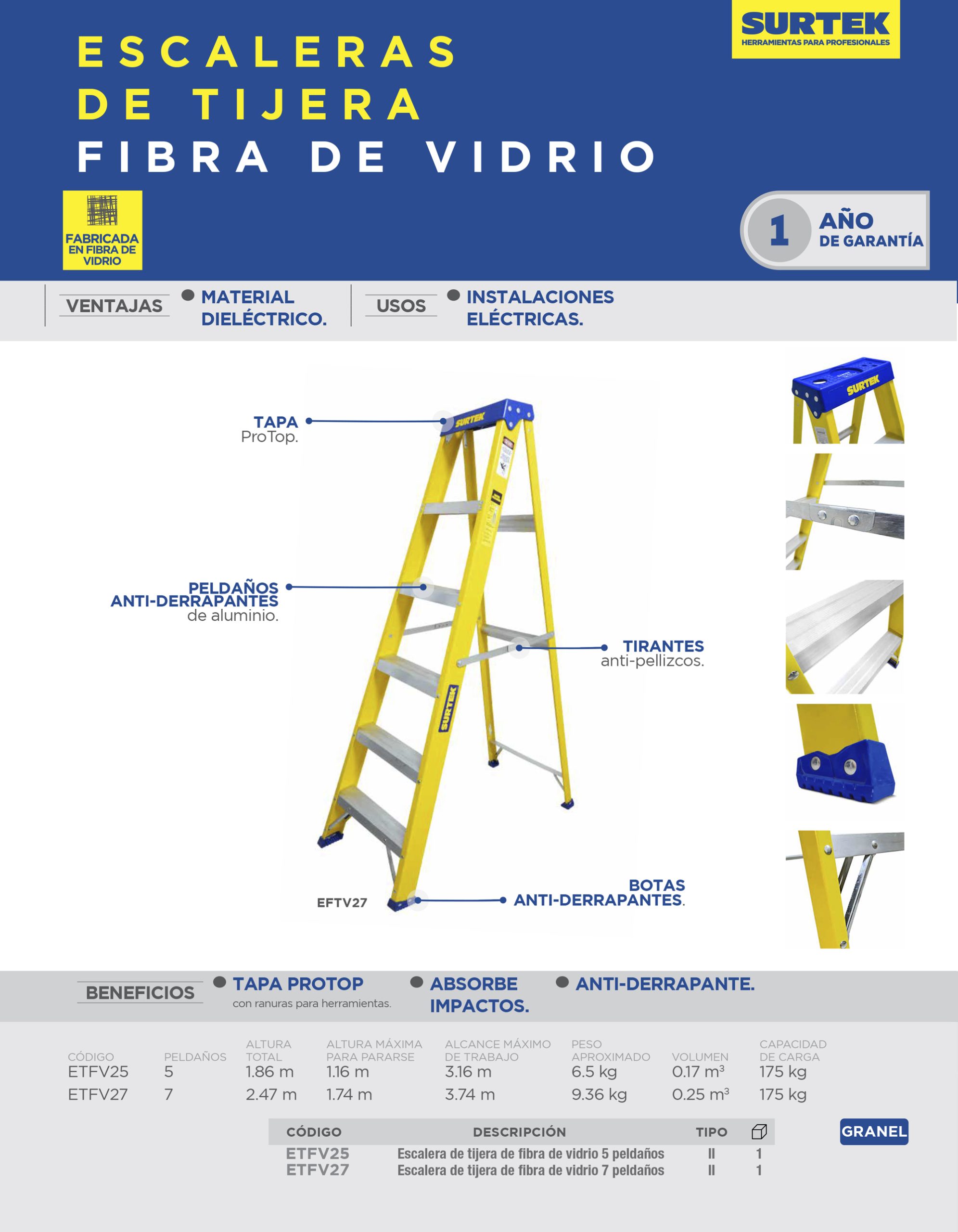 Escalera de tijera tipo II de fibra de vidrio con 7 peldaños Surtek