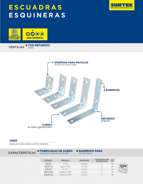 Escuadra esquinera 2″ x 2″, 24 piezas Surtek