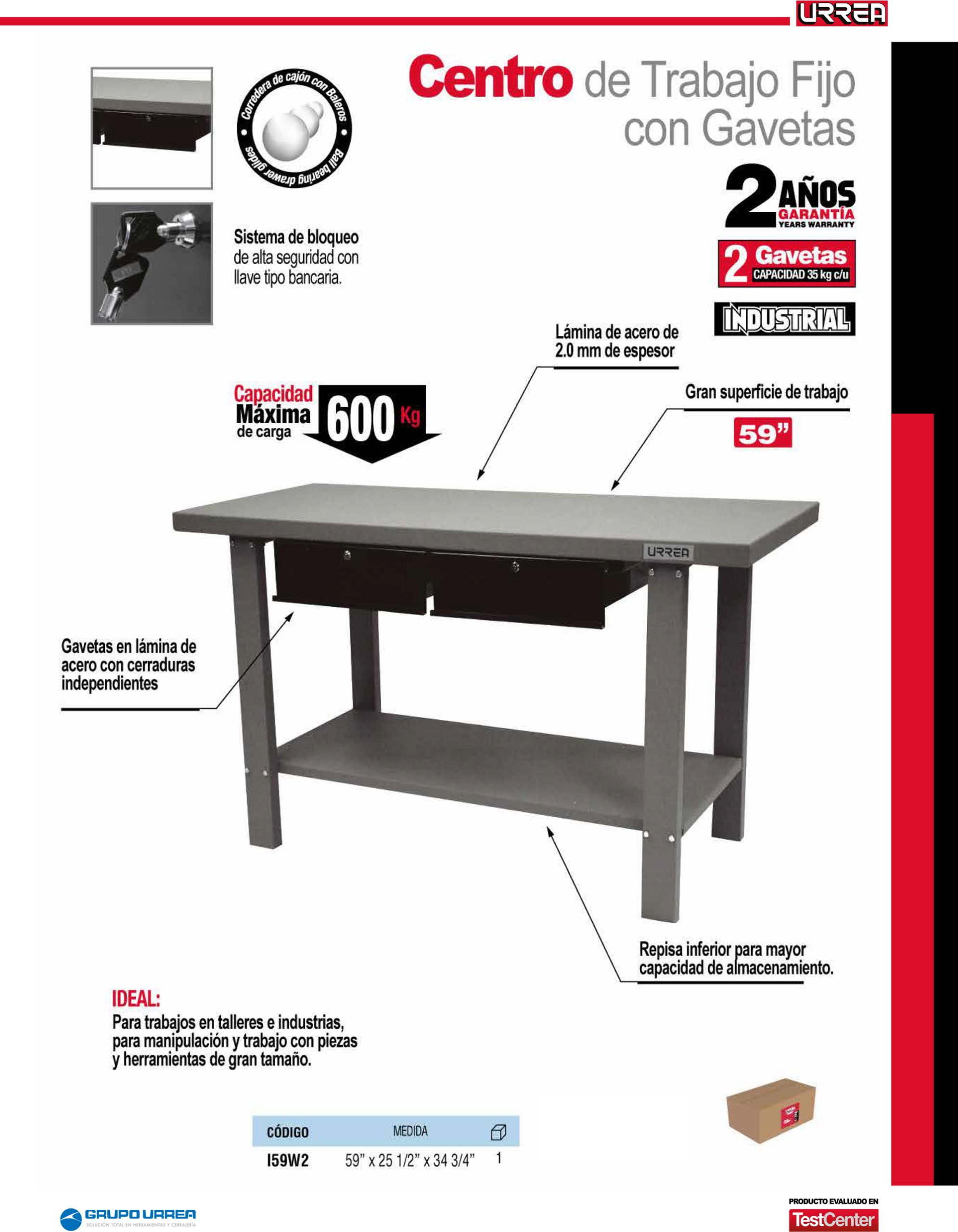 Estación de trabajo con 2 gavetas serie H 59″ Urrea