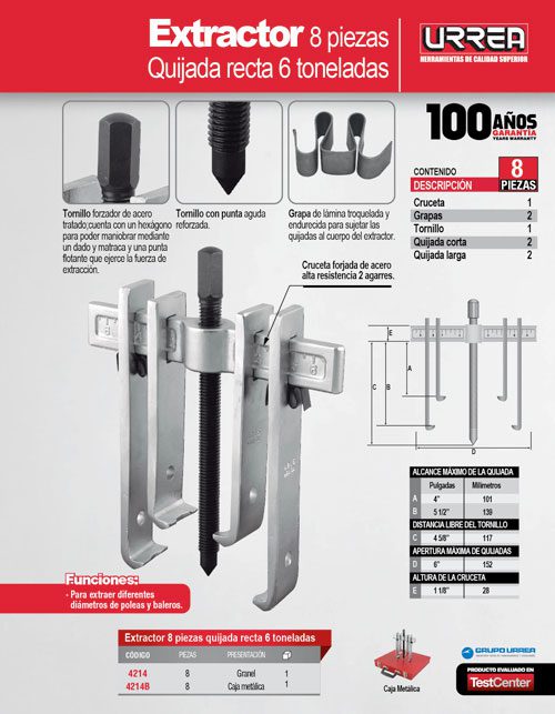 Extractor quijada recta tipo “A” 6 ton, 8 piezas Urrea