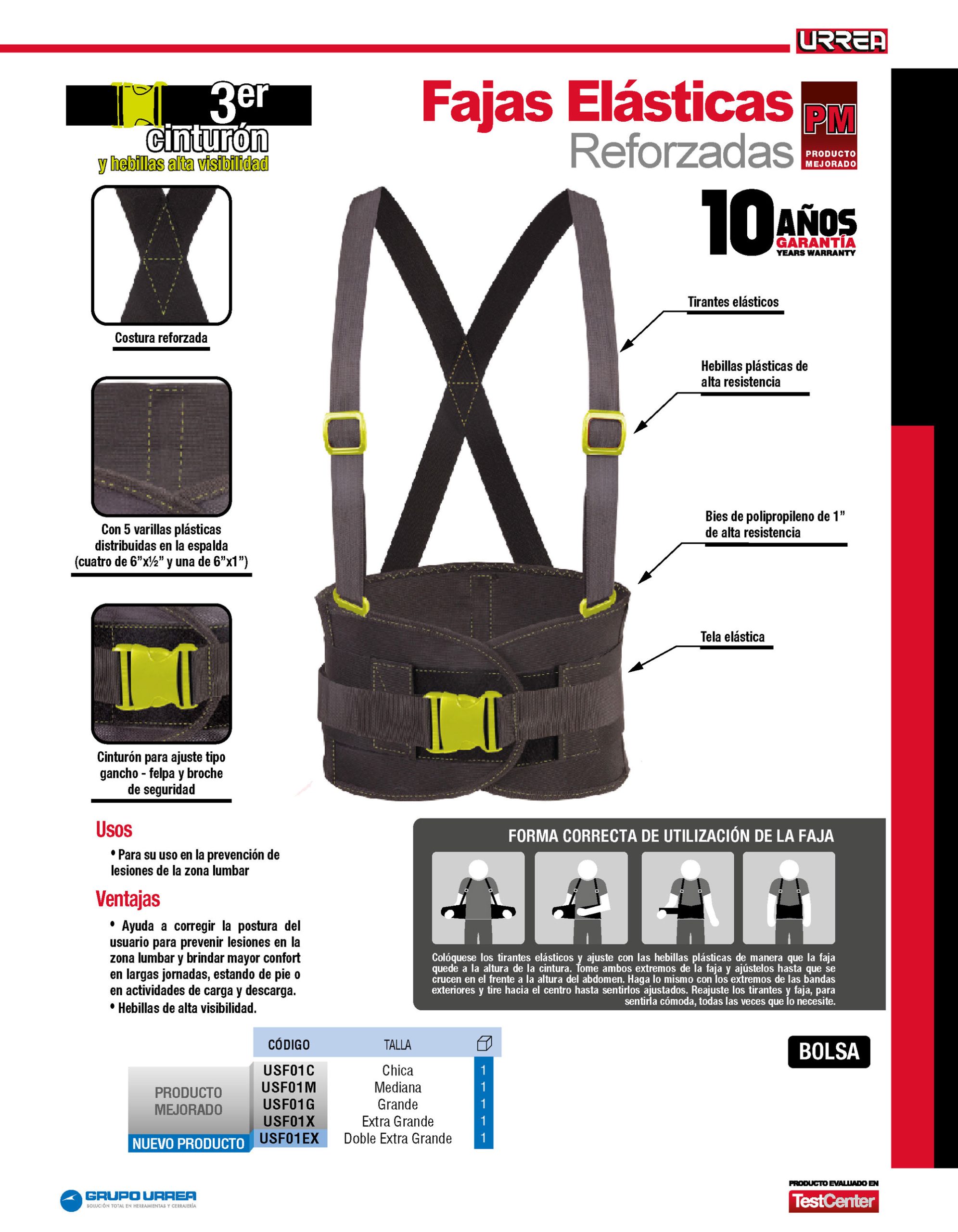 Faja elástica reforzada con hebillas de alta visibilidad CH Urrea