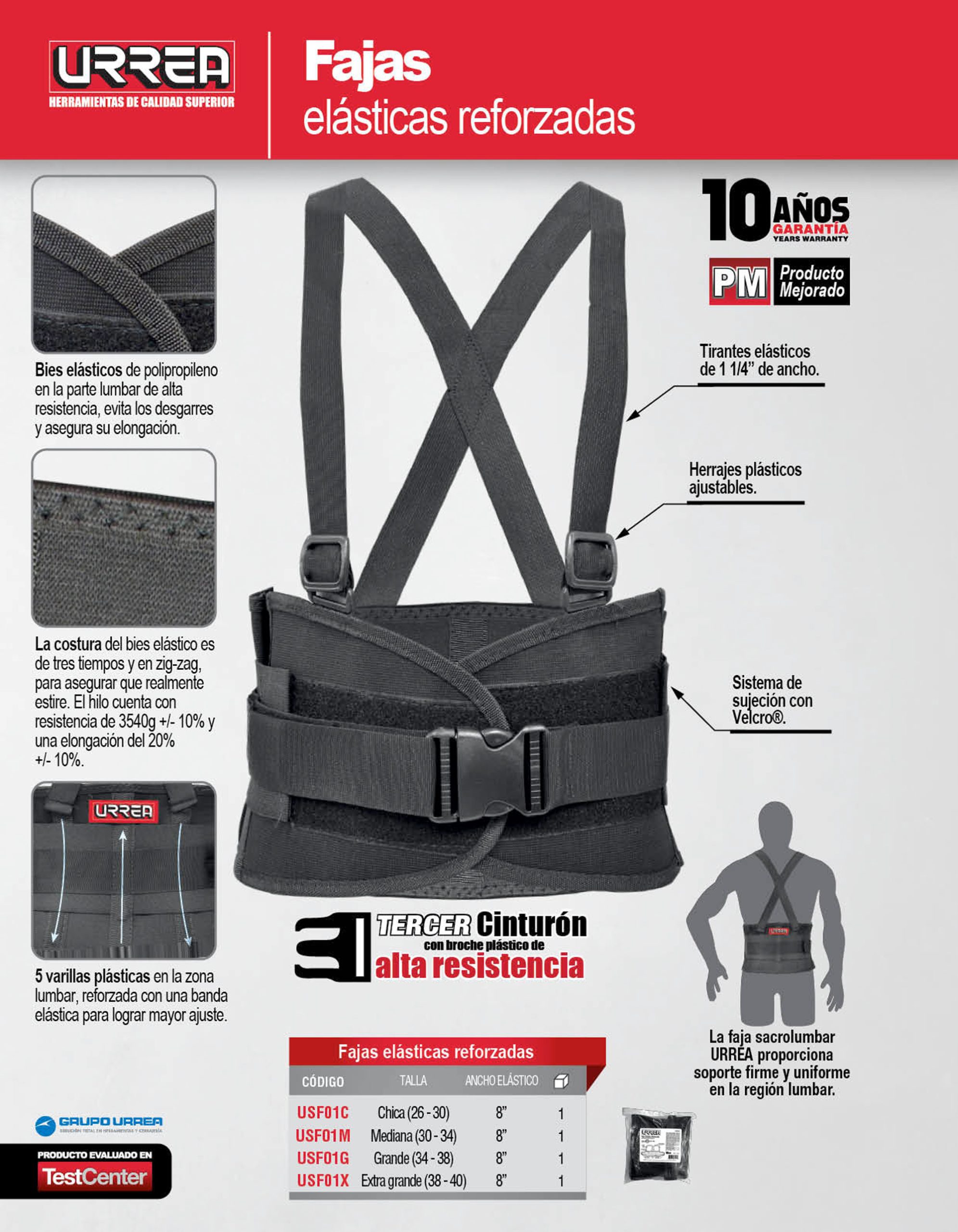 Faja elástica reforzadas con hebillas de alta visibilidad de 3 cinturones EG Urrea
