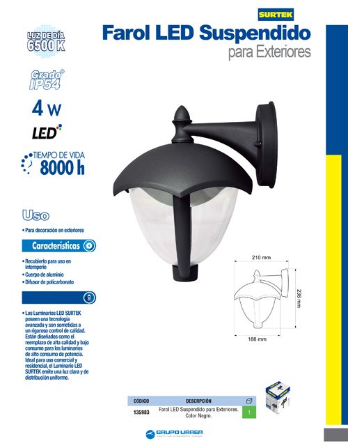 Farol de LED suspendido negro 4 W de 320 lm Surtek