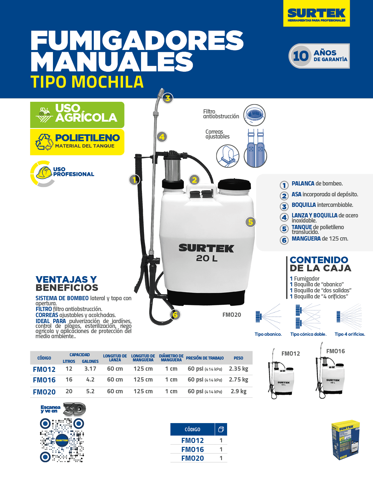 Fumigador tipo mochila 12 Lt Surtek