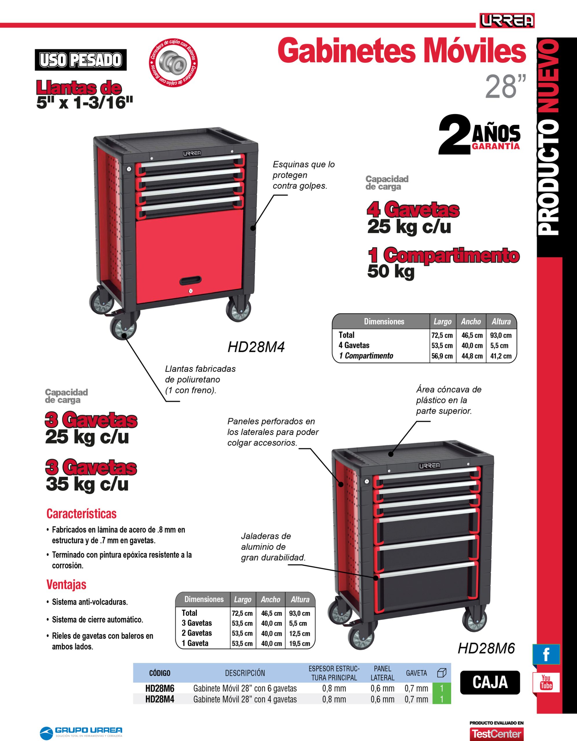 Gabinete móvil 4 gavetas color rojo y negro serie HD 28″ Urrea