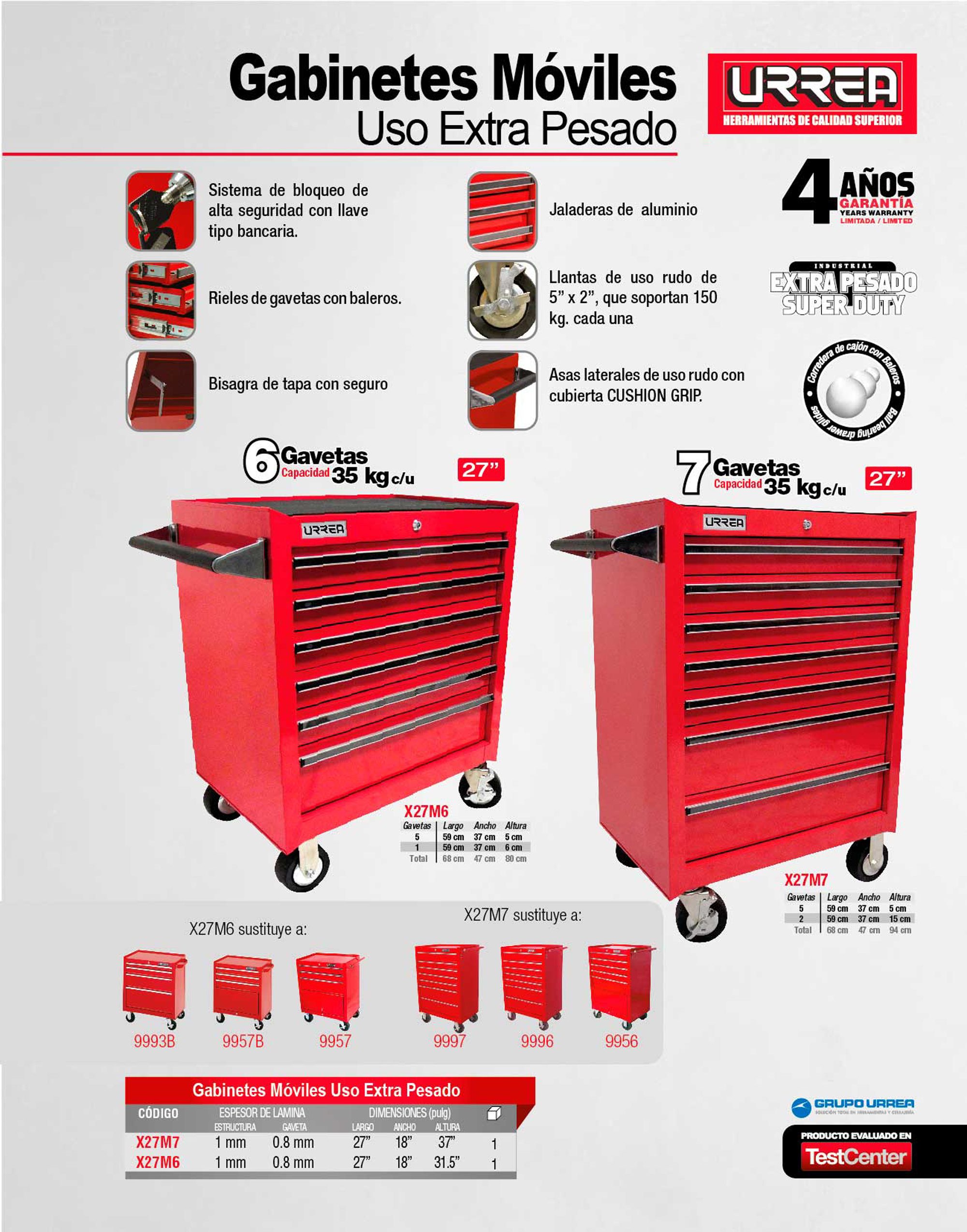 Gabinete móvil 7 gavetas color rojo serie X 27″ Urrea