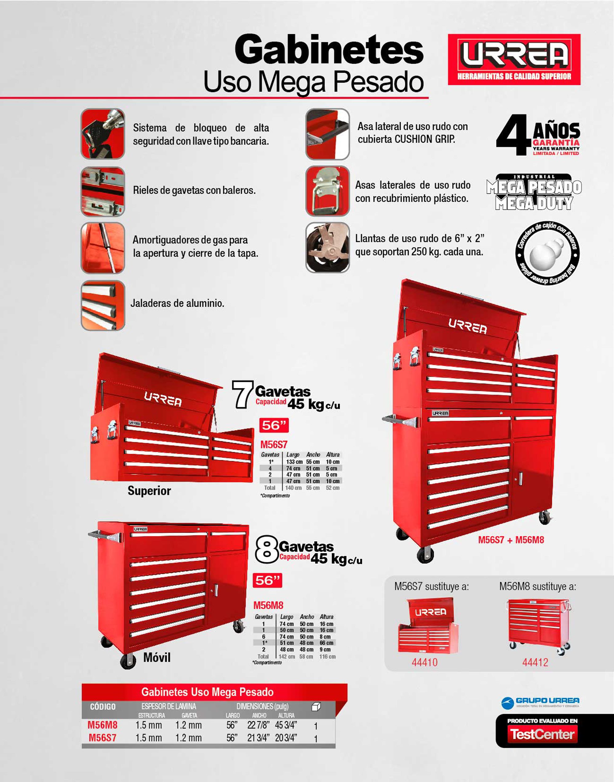 Gabinete superior 7 gavetas color rojo serie M 56″ Urrea