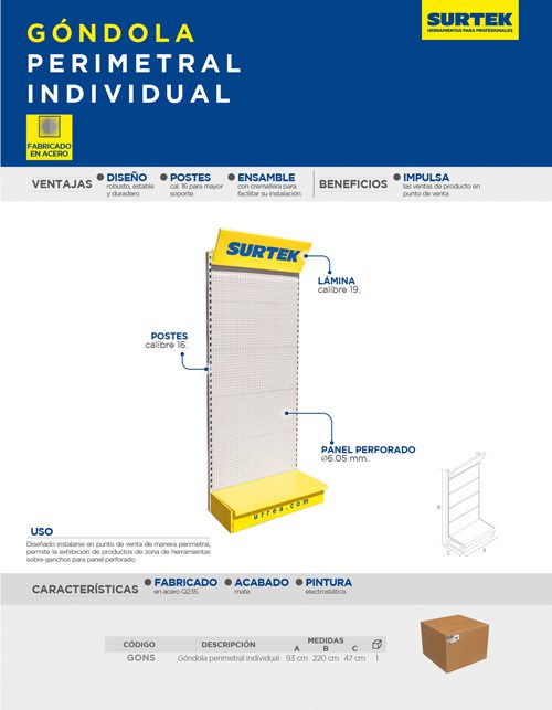 Góndola perimetral panel metálico 220 x 93 x 47 cm Surtek