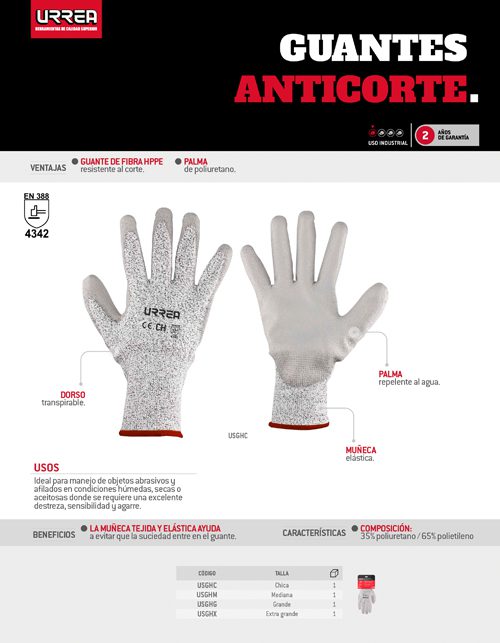 Guantes anti-corte con recubrimiento de poliuretano EG Urrea