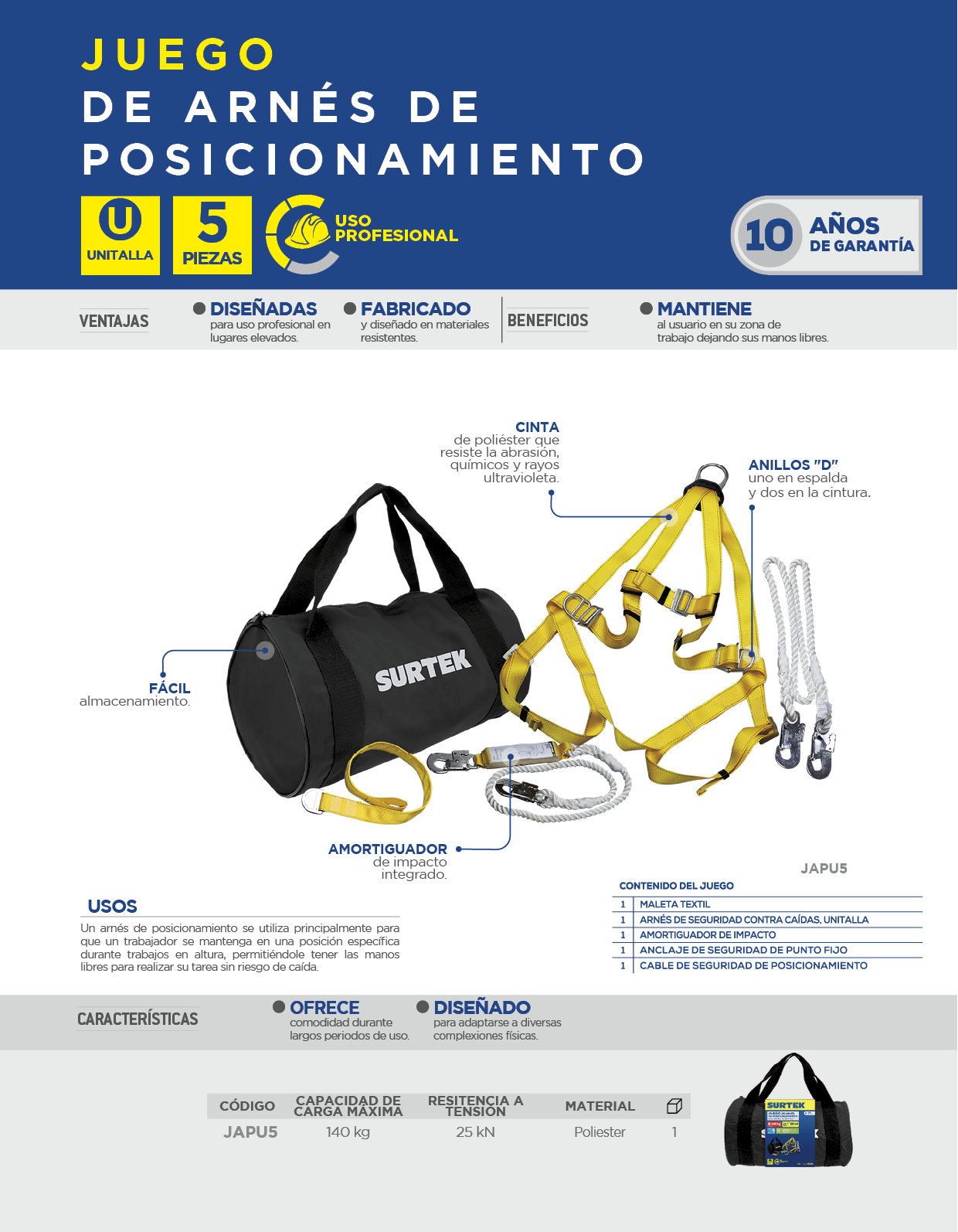 Arnés de seguridad de posicionamiento, unitalla (137441)