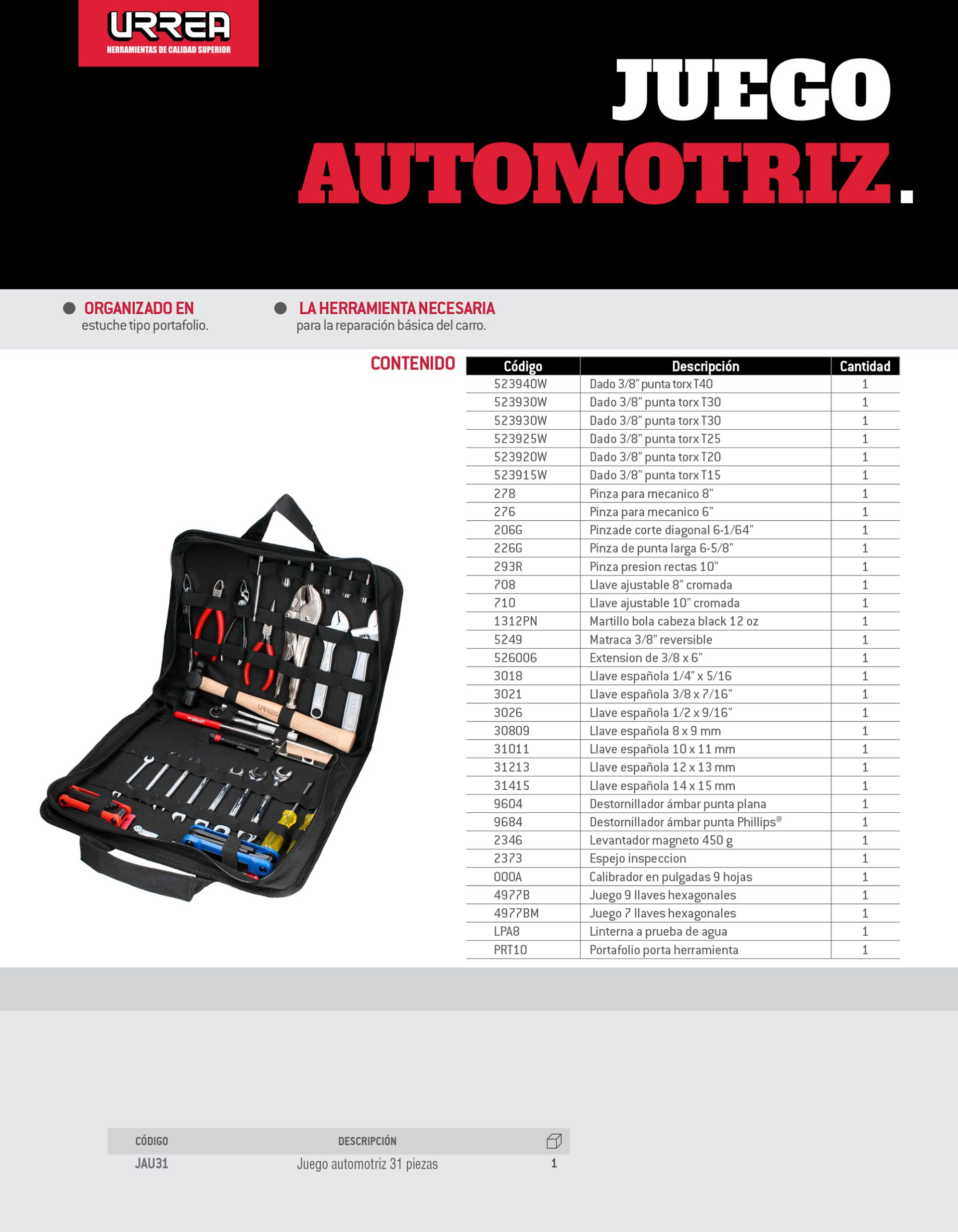 Juego combinado automotriz para reparación básica 31 piezas, con portafolio Urrea