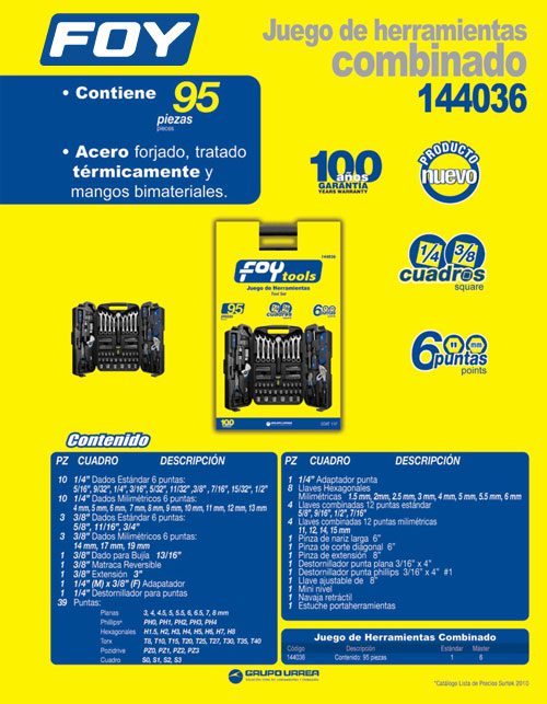 Juego combinado de herramienta 95 piezas, con estuche plástico Foy