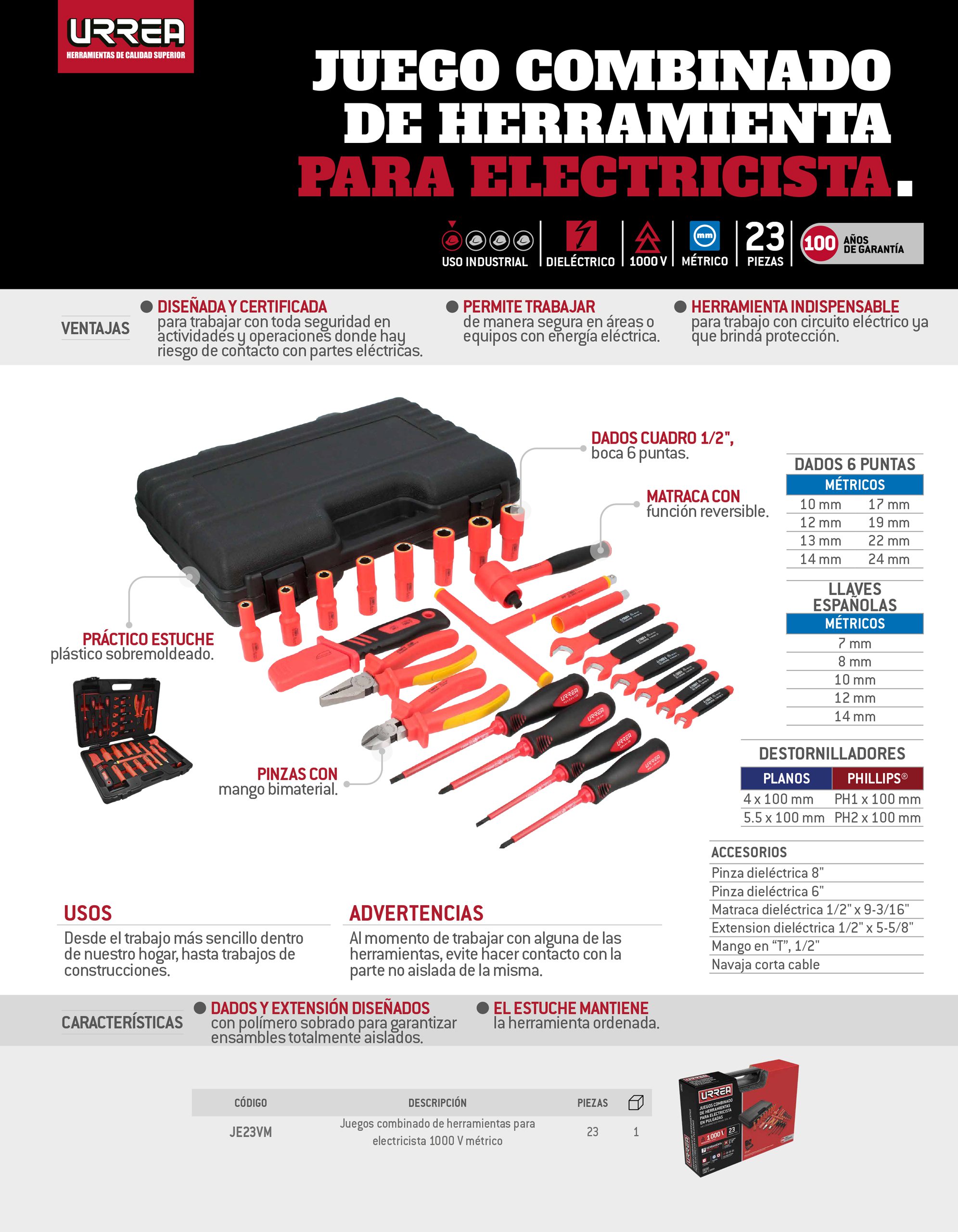 Juego combinado de herramientas para electricista, 23 piezas Urrea