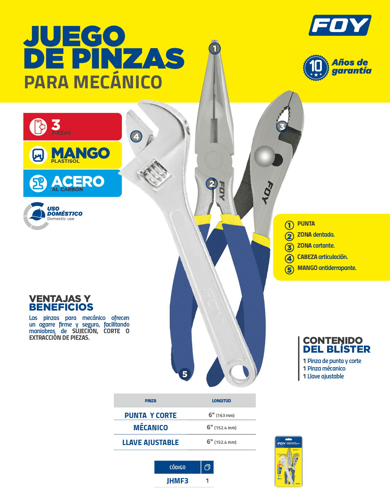 Juego combinado de pinzas para mecánico, 3 piezas Foy