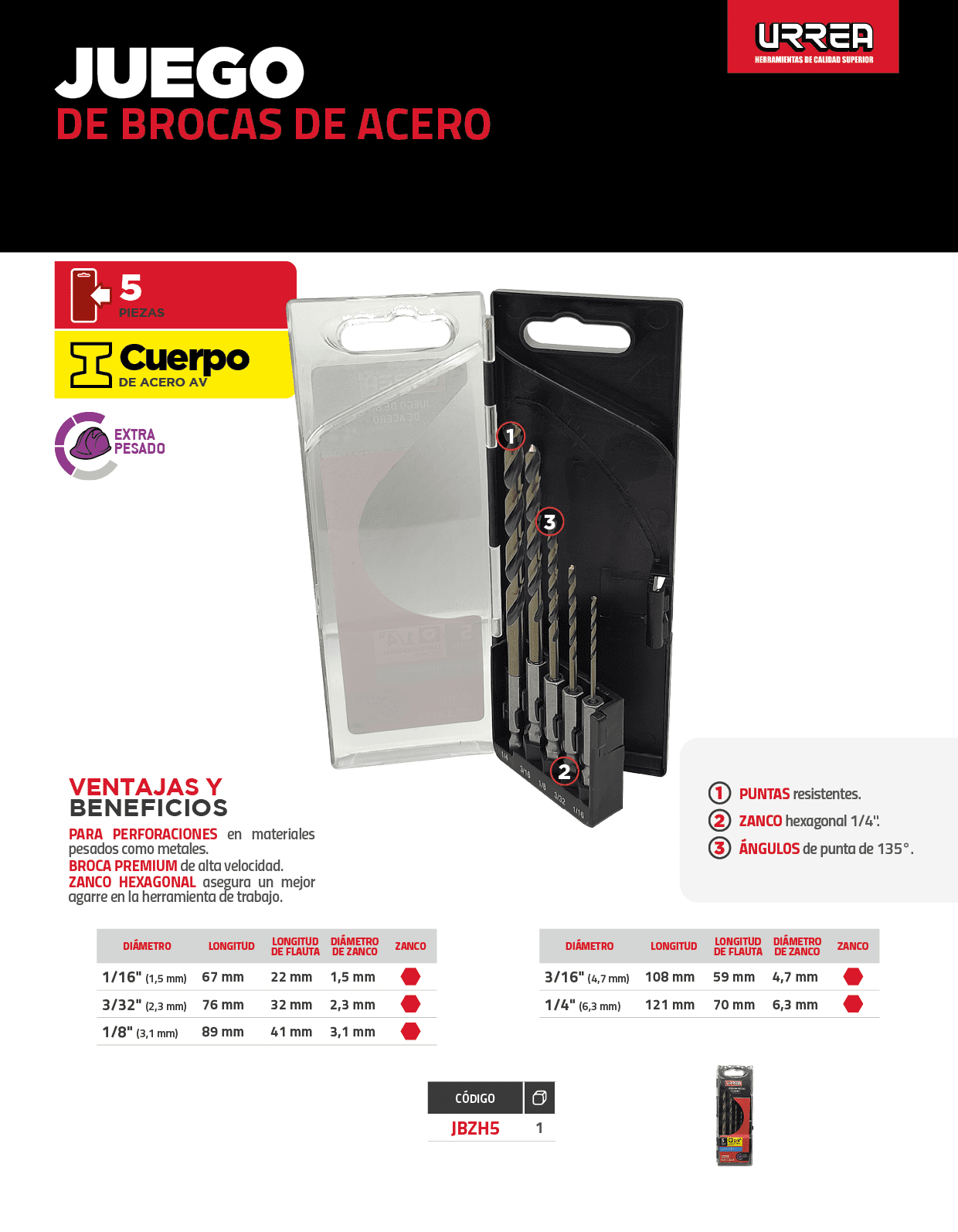 Etiquetas: 5 piezas / Juego de brocas premium de acero de alta velocidad zanco hexagonal, 5 piezas Urrea / Juego de brocas zanco hexagonal Urrea / Juego de brocas con zanco hexagonal 5 piezas, Juego de brocas premium con cobalto de acero de alta velocidad con cobalto zanco hexagonal