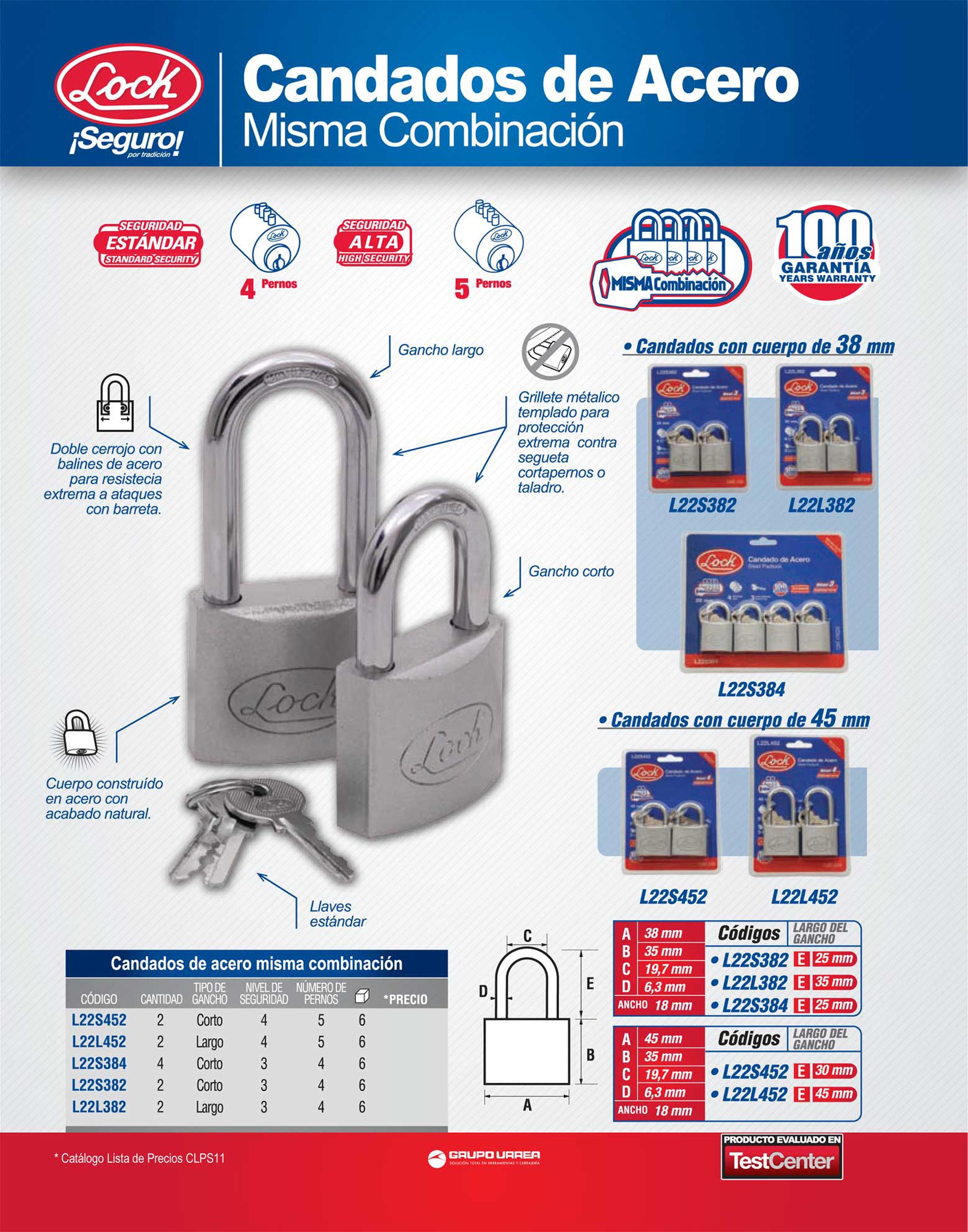 Juego de candados de acero cortos 38 mm, llave estándar, 4 piezas LockJuego de candados de acero cortos 38 mm, llave estándar, 4 piezas Lock