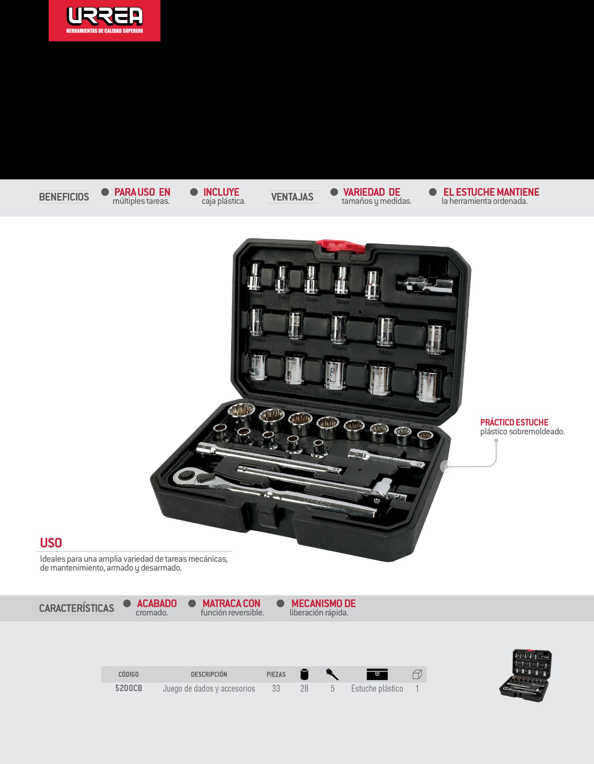 Juego de dados y accesorios cuadro de 3/8″ combinado, 33 piezas Urrea