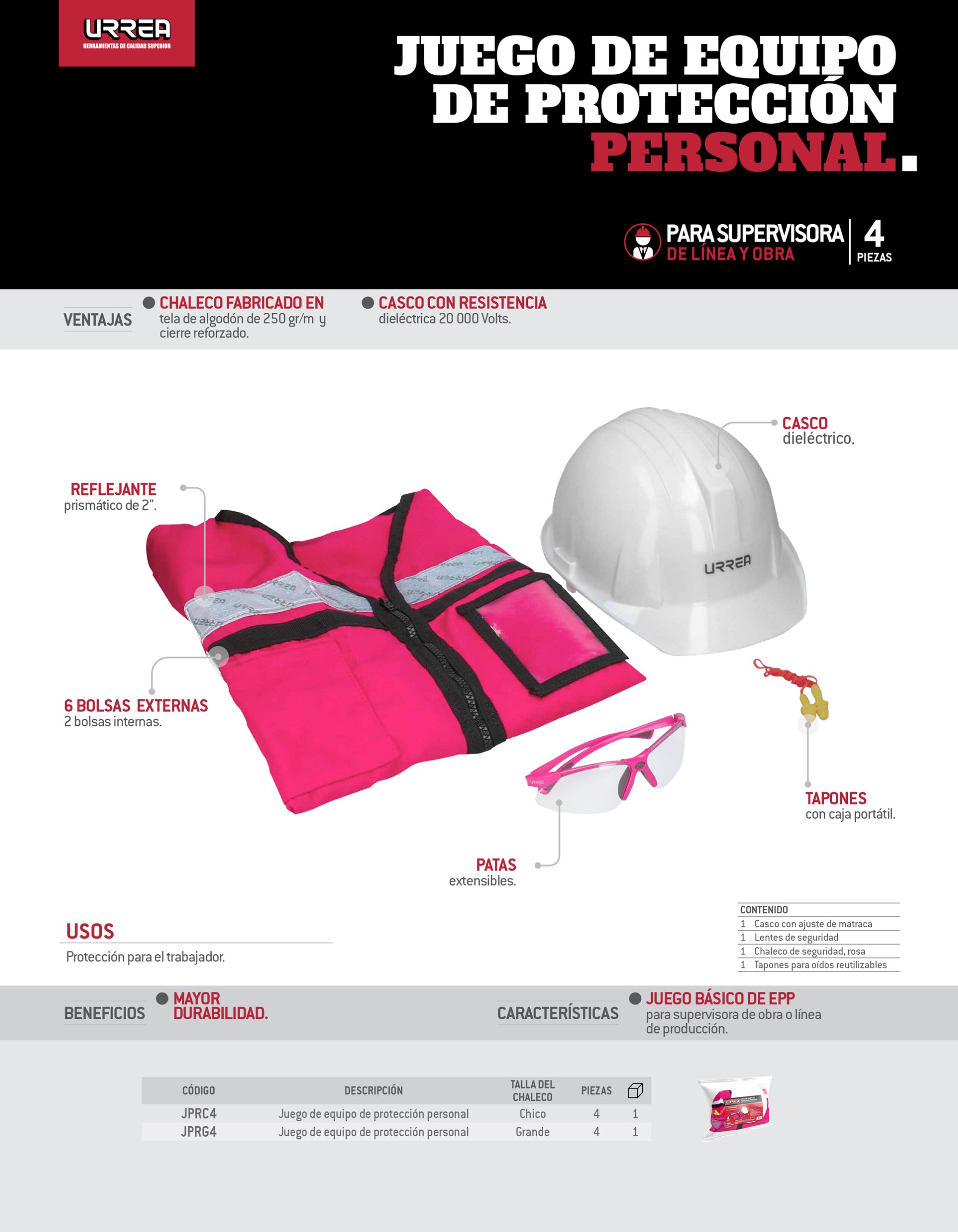 Juego de equipo de protección personal rosa G, 4 piezas Urrea