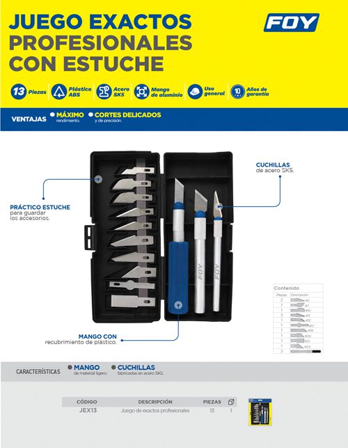Juego de exactos con mango de aluminio, 13 piezas Foy