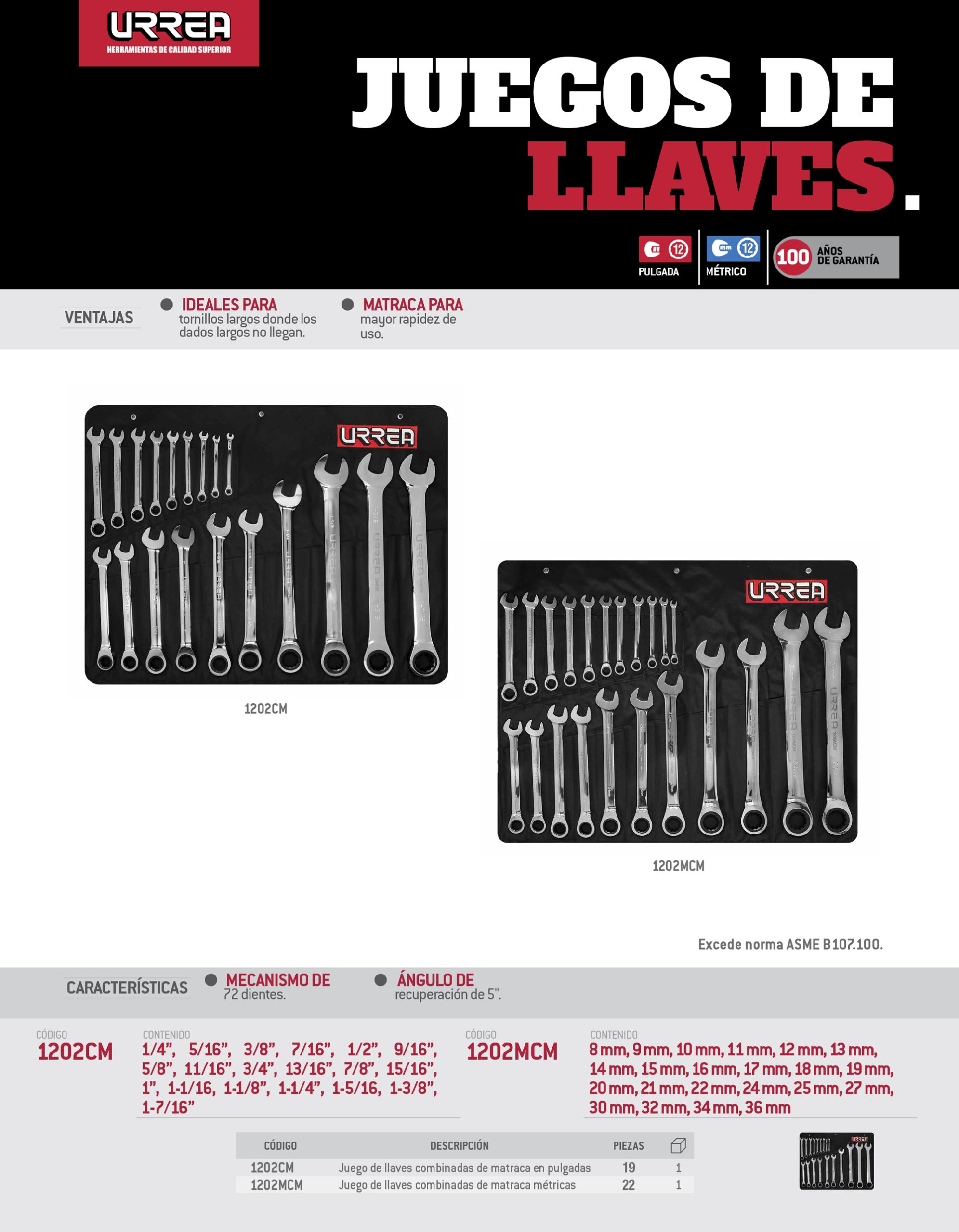 Juego de llaves combinadas pulido espejo de matraca mét, 12 puntas, 22 piezas en estuche Urrea